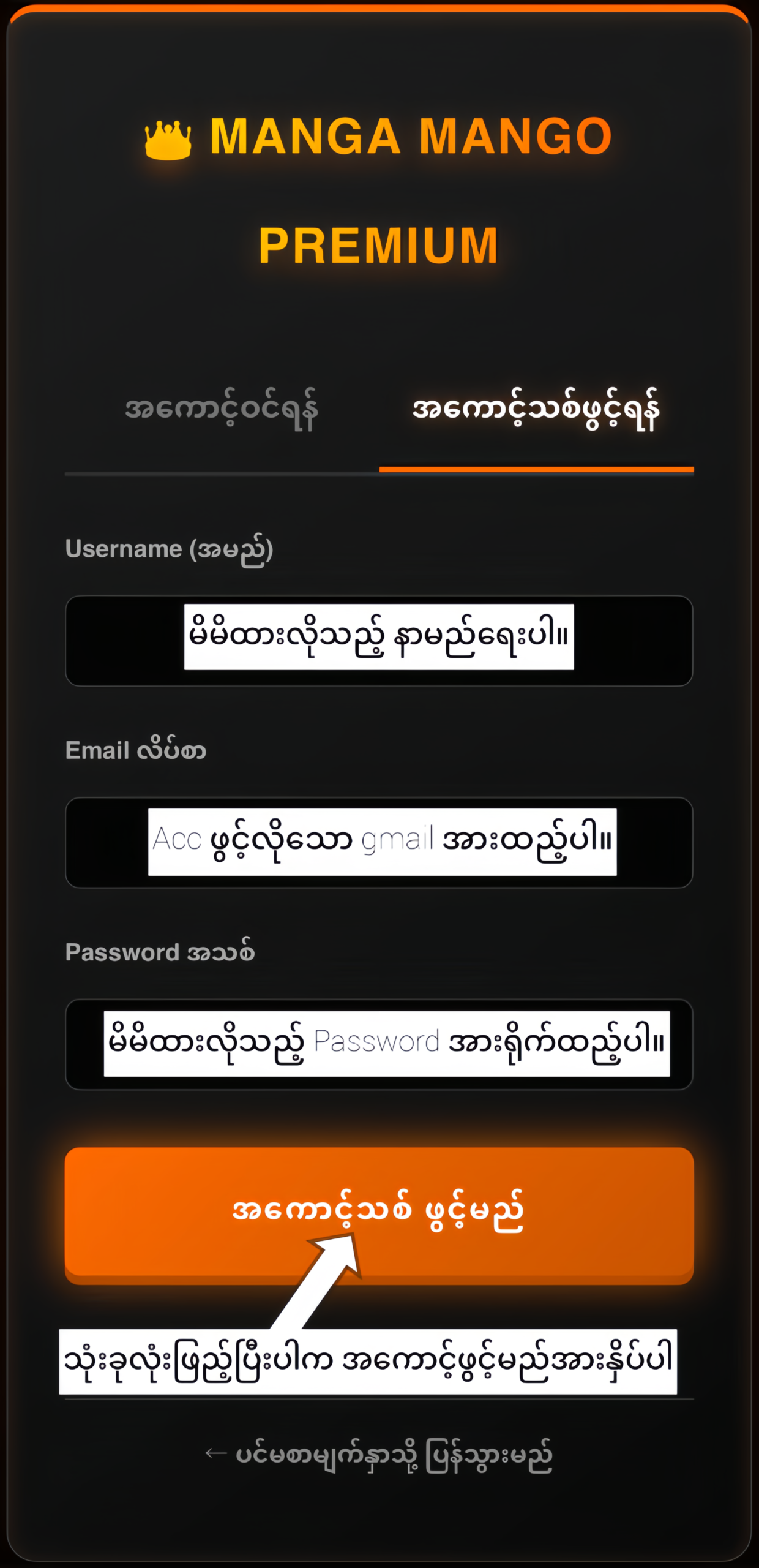 📝 အကောင့်သစ်ဖွင့်နည်း