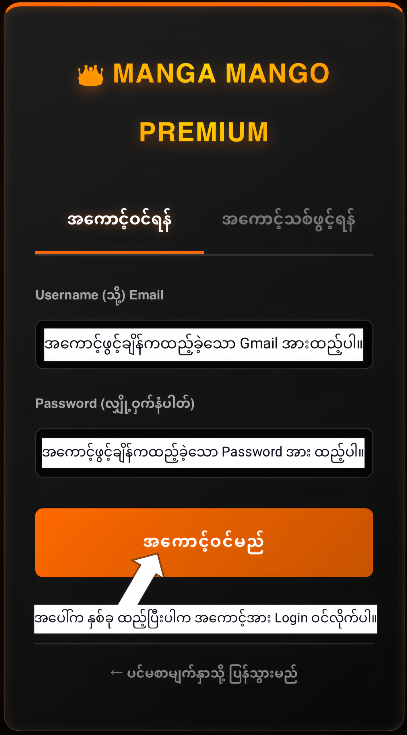 🔑 အကောင့်ဝင်နည်း